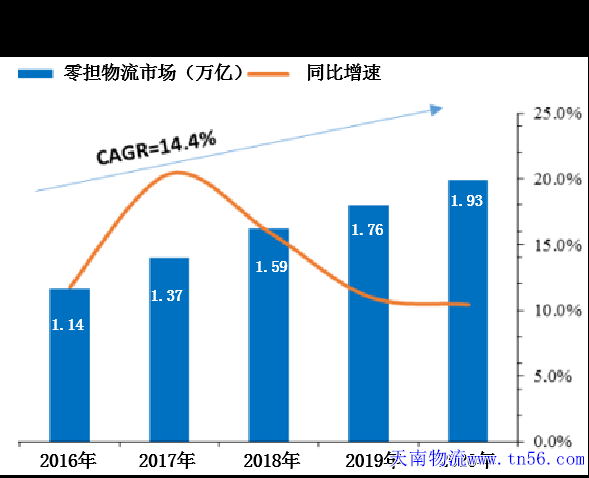 專家預測,到2020年,零擔物流(即專線物流)行業(yè)市場體量將達到近2萬億元。從2016年開始,整個市場都在以10%以上的速度在增長,發(fā)展前景十分廣闊。